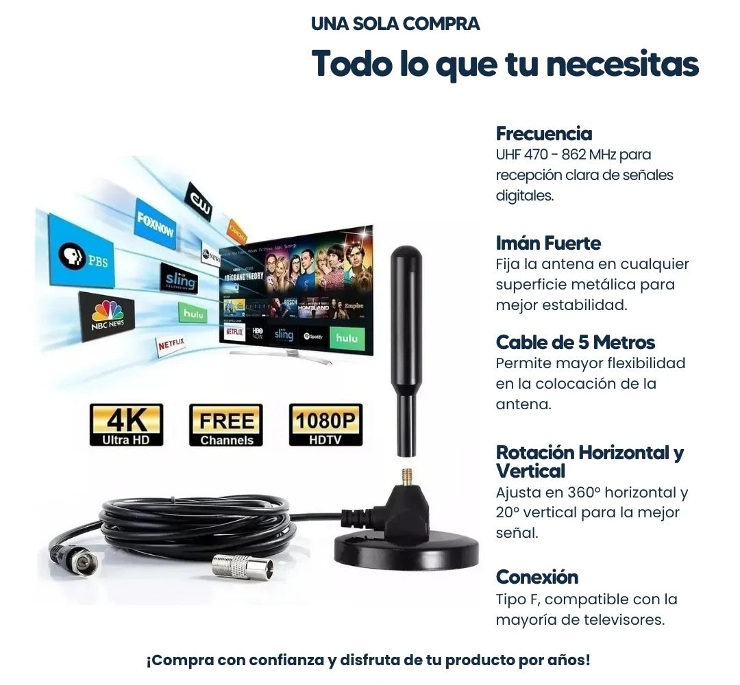 Con laAntena TDT , disfruta de canales abiertos en Alta Definición, totalmente GRATIS, sin pagar mensualidades, afiliaciones ni tarifas extras.