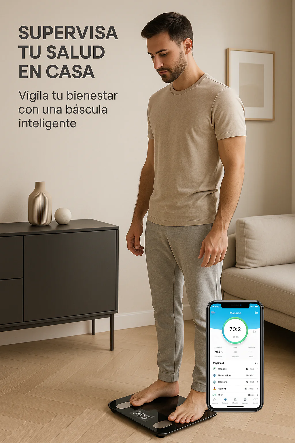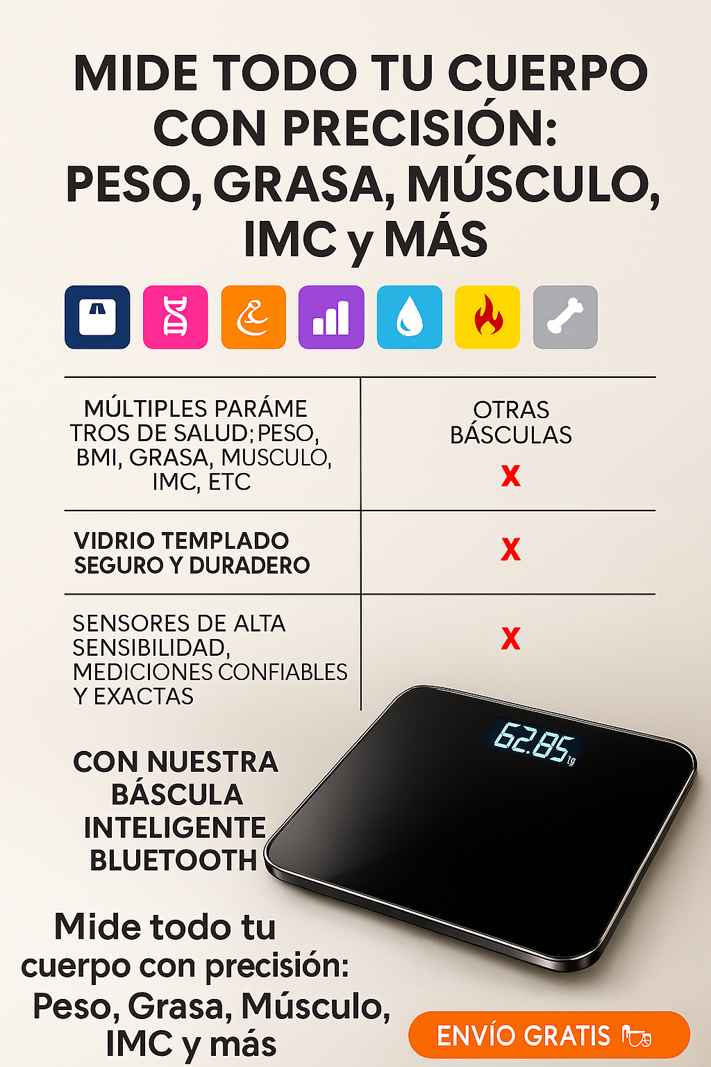 ✅ Análisis corporal completo: Mide peso, grasa, agua corporal, masa muscular, IMC y más.