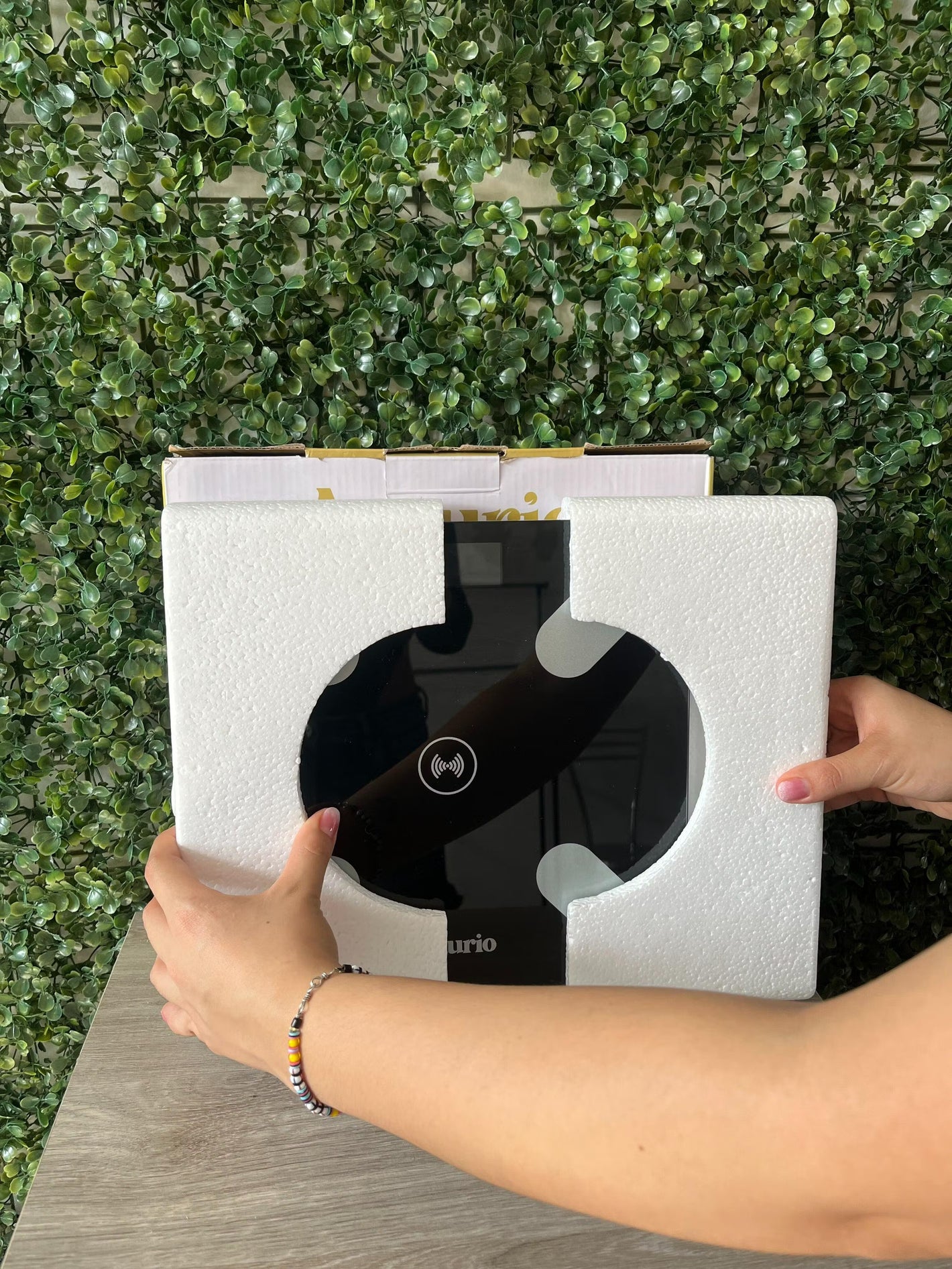 ✅ Diseño premium: Superficie de vidrio templado y plataforma antideslizante.