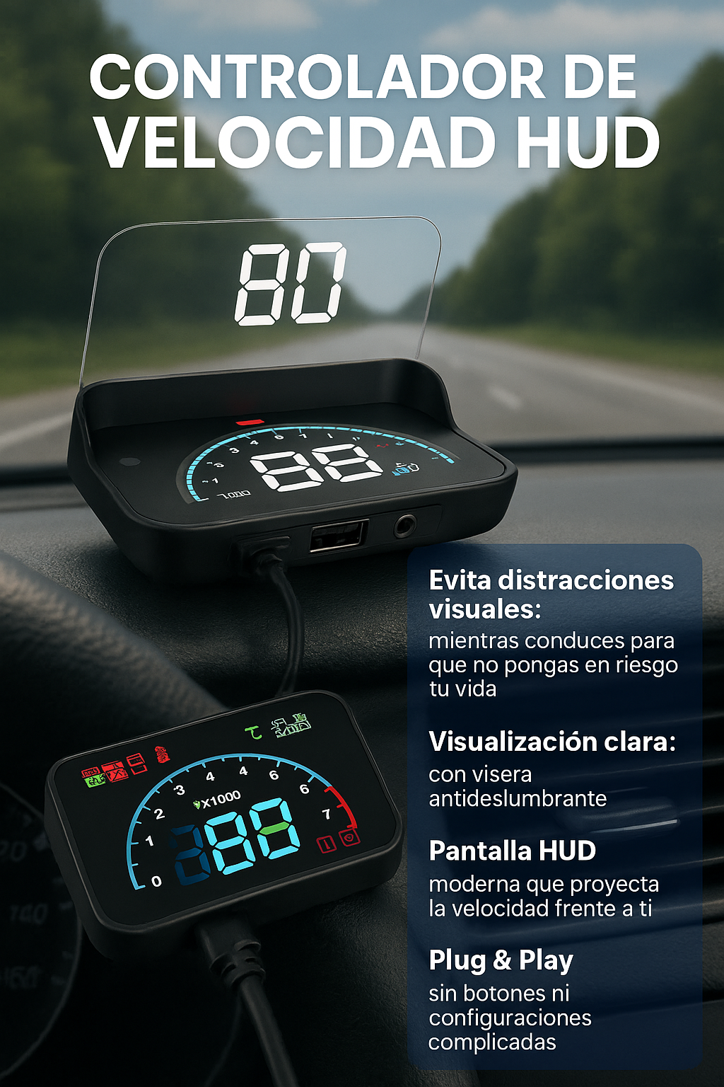 Dale a tu carro un estilo moderno y elegante con el Controlador de Velocidad LED. Este innovador accesorio proyecta en el parabrisas la velocidad, Incluye sensor de gasolina y medidor de temperatura integrados