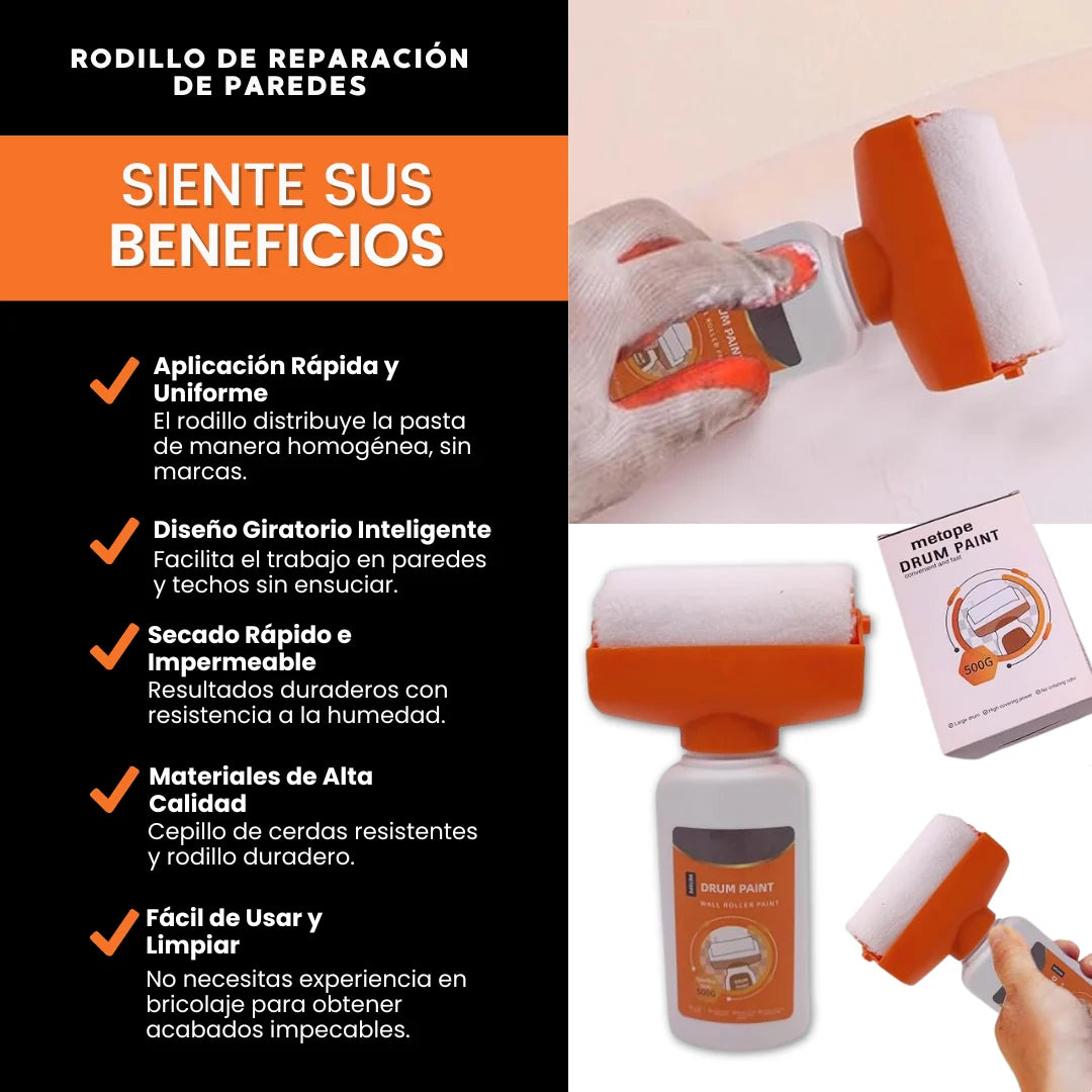 Con el Rodillo Reparador cubres grietas, rayones y manchas de moho en segundos, dejando un acabado liso y limpio como nuevo.